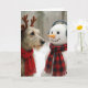 Tarjeta Christmas Irish Wolfhound Gazing at a Cute Snowman