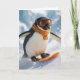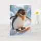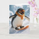 Tarjeta Christmas Penguin Snowboarding Downhill
