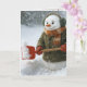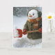 A cheerful, chubby snowman energetically shovels a path with a bright red shovel, expertly carving through a deep snowdrift.