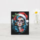 Tarjeta Christmas Sugar Skull Art Woman Santa Hat Festive