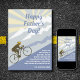 Esta tarjeta de bicicleta de carretera Feliz Día del Padre cuenta con un ciclista que anda en bicicleta por una montaña. Saludo - "que el sol brille intensamente en tus paseos, que el viento esté a tu espalda y que cada pedalada llene tu corazón de felicidad. gracias por ser el mejor padre que podría pedir." El saludo se puede modificar fácilmente para leer como desees.