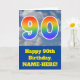 La parte delantera de este divertido diseño de tarjetas de felicitación de cumpleaños 90 presenta una representación del cielo azul turbio, junto con el número "90" que tiene un espectro multicolor de arcoiris como el patrón gradiente. En la parte delantera también aparece un mensaje de bienvenida de cumpleaños, incluido un nombre de destinatario personalizado. El interior presenta un mensaje de bienvenida de cumpleaños de personalizado, o tal vez podría ser borrado y dejado en blanco si se va a escribir un mensaje a mano. Una tarjeta de cumpleaños personalizada como esta podría ser una manera divertida de enviar un mensaje para celebrar el cumpleaños número noventa de alguien. [~Z0000370]