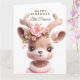 Tarjeta Ciervo bebé lindo en vestido rosa con flores