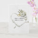 Cinta de satén blanco de boda con corazón con ramo de hiedra y anillos de corazón de oro para felicitaciones a recién casados. Los nombres y la fecha de la boda son editables.