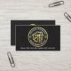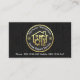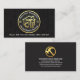 Una cubierta de madera de madera negra presenta un diseño de herramientas de mano dorada para el hogar donde el círculo está atornillado por dos tornillos de cabeza. En la parte superior del círculo está tu prestigioso nombre con el nombre de la empresa en la parte inferior. Los datos de contacto se pueden encontrar cerca de la base de la tarjeta. Al dorso, en una cubierta gris oscura, un logotipo de martillo dorado que se puede usar está en la parte superior. A esto le sigue su prestigioso nombre, detalles de contacto y un pie de foto para publicitar su negocio. Una gran tarjeta para el hombre a mano, reparaciones de casas, construcción o negocios de construcción.