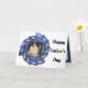 Esta tarjeta del Día del Padre presenta un diseño de arte fractal circular azul con una foto en el medio. Dentro están las palabras, "Me alegra que seas mi papá!". Personaliza esta tarjeta para desearle a tu padre un Feliz Día del Padre.