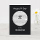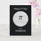¡A tu marido no le gustará recibir esta tarjeta irracional! El Pi Day es un día festivo poco conocido, excepto para aquellos que lo deseen. Un círculo blanco con borde, tiene dígitos al azar dentro con un fondo negro por todas partes. Se coloca un símbolo pi en el centro del círculo y encima de los números. Esta tarjeta se entrega perfectamente en el Día Pi con sofisticación.