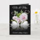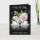 Una hermosa tarjeta de felicitación con elegantes cisnes y fácil personalización. Ideal para bodas o aniversarios.