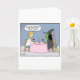 Una bruja y un hombre sentados a una mesa disfrutando de una cena romántica. El hombre dice, "Entonces, ¿tu perfil dice que te gustan los niños?". Es una tarjeta de color divertida, perfecta para el Día de San Valentín.