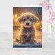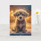 Perro cachorro lindo afuera en una tarjeta de Navidades personalizada nocturna iluminada.