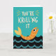 ¡Celebra el éxito o el arduo trabajo de alguien con esta tarjeta de "Estás Pescando"! Con una ilustración alegre de krill contra olas del océano, este diseño lleno de juegos de palabras es perfecto para enviar ánimos, felicitaciones o simplemente un estímulo divertido. Ideal para amantes de la vida marina, entusiastas del océano o cualquier persona que aprecie un buen juego de palabras. Disponible como tarjeta de felicitación impresa o descarga digital.