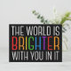 El mundo es más brillante contigo en él. Ser una fuerza positiva en el planeta con esta cita motivacional de la felicidad para un amigo con depresión. Hermoso diseño de inclusión del orgullo gay LGBTQ. Comparte esta cita motivacional que anima y anima a los espíritus con sus afirmaciones. Perfecto para un psicólogo con pacientes con depresión de salud mental o alguien que tiene pensamientos suicidas.