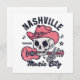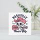 El bonito diseño de "Nashville Tennessee Music City" muestra un lindo cráneo con un gorra de vaquero rosado que da el signo de la mano de la paz con un fondo rosado de guitarra clásica. Este diseño rosa y azul de Nashville es un buen regalo para un residente de Nashville o para cualquiera a quien le guste Nashville, la música country y los diseños de cráneo rosado.