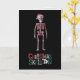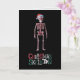 Un esqueleto con la cabeza rosada y los huesos de caramelo lleva puesto un sombrero de Santa.