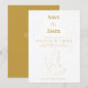 Tarjeta clásica de anuncio de fecha de boda con un diseño elegante de paloma blanca y dorada. Una tarjeta bellamente doblada para anunciar la fecha de su boda en un estilo atemporal y refinado. Impreso plano — sin relieve ni textura elevada. Totalmente personalizable con los detalles de su evento.