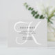Estas elegantes tarjetas de información de recepción de boda muestran su monograma en texto grande y moderno coloreado en blanco sobre un fondo gris suave.