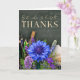 This card features a classroom-styled chalkboard background filled with handwritten mathematical equations and notes, giving a strong educational feel. The message “Best wishes & heartfelt THANKS” appears in a beautiful blend of gold uppercase and soft cursive script. At the bottom, a vibrant arrangement of blue, lilac, and purple florals stands out brilliantly. To the left, pencils, pens, rulers, and classroom tools sit in a black mesh holder. An open book and budding flower appear on the right, symbolizing learning, knowledge, and inspiration. This card is perfect for teachers of any subject — school teachers, math teachers, science tutors, lecturers, professors, classroom educators, private tutors, and academic mentors.