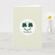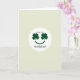 This card features a pale, sage-leaning green background with a white circle centered like a spotlight. Inside the circle, a simple smiling face is formed with two emerald four-leaf clovers as eyes, giving the “look” a sweet, lucky charm ☘️. A curved dark-green line beneath them makes a gentle smile, like it’s quietly grinning at someone it adores 💚. Above the circle, the words “Love You” appear in dark green, placed near the top and spaced to feel airy. Below the circle, “Husband” sits in matching dark green, centered and balanced with the text above. The limited palette of soft green, white, and rich green keeps the scene calm while the clover eyes add a romantic wink. The clovers are angled slightly outward, with each leaf clearly defined against the white circle.