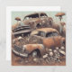 Tarjeta Coches antiguos oxidados y setas