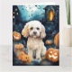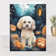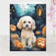 Tarjeta Cockapoo de Halloween con calabazas aterrador