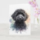Un bonito diseño de un Cockapoo negro con un fondo acuarela.