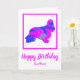 Silueta de perro de espátula de Cocker con un loco tópico abstracto rosa caliente y azul brillante moderno. El divertido mensaje de cumpleaños dentro puede cambiarse a lo que quieras. Personaliza con el nombre en la parte delantera.