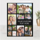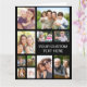 Un recuerdo de collage de fotos personalizado en una tarjeta grande para cualquier ocasión (cumpleaños, compromiso, día del padre, día de la madre, aniversario, etc.). Personaliza con once fotos de familiares, amigos, mascotas, recuerdos, eventos, viajes, etc. y agrega una o dos líneas de texto en tipografía blanca simple sobre un fondo negro. En el interior, agrega tu mensaje personalizado. Los colores del fondo y el texto se pueden cambiar seleccionando editar en la herramienta de diseño.