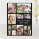Un recuerdo personalizado de collage de fotos en una tarjeta grande para cualquier ocasión (cumpleaños, compromiso, día del padre, día de la madre, aniversario, etc.). Personalice con once fotos de familiares, amigos, mascotas, recuerdos, eventos, viajes, etc. y agregue una o dos líneas de texto en tipografía blanca simple sobre un fondo negro. En el interior, agregue su mensaje personalizado. Los colores del fondo y del texto se pueden cambiar seleccionando editar en la herramienta de diseño.