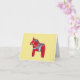 La imagen en esta tarjeta es de los caballos de un Dala tallados, diseñados y pintados por Julia Persson-Morrill
