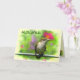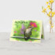 En esta tarjeta Día del Padre hay un joven colibrí gaviota. Todavía no ha desarrollado la coloración del rubí en su garganta. Está sentado en una barra metalizado, listo para sumergirse en el néctar de las flores que lo rodean. El fondo es una agradable paleta de color rosa, rojo, dorado, amarillo y verde. Hay más colibríes dentro. Todo el texto puede ser personalizado para satisfacer sus necesidades.