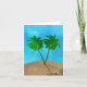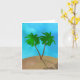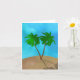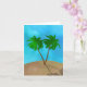 Tarjeta en una escena de playa de palmeras tropicales, arena y cielo hecha de un collage digital de acuarelas e imágenes estampadas