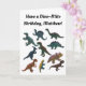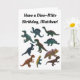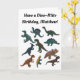 Cree una tarjeta dino-mite para cualquier ocasión con esta tarjeta de saludo que incluye un collage de dinosaurios de juguete plásticos en diversos colores con su propio mensaje personalizado encima en negrita con letras en forma de escritura negra. Un mensaje de coordinación dentro también está listo para tu toque personalizado y se acentúa con fotos de dino de juguete.