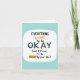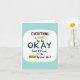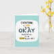 La tarjeta de felicitación se vuelve pronto con una forma cuadrada blanca y redondeada con un suave borde azul claro. En su interior, encontrará una mezcla de estilos de fuente y colores que crean una cita motivacional que dice "TODO" en letras negrita y vibrantes multicolores en la parte superior. Debajo de eso, "is GOING" está escrito en un texto negro y amarillo más pequeño, seguido por "TO be" en un pequeño texto negro. La frase concluye con un tranquilizador "OKAY" en grandes letras azules oscuras, y "(y si no lo es, estaré JUSTO a tu lado)" en texto negro más pequeño, con "RIGHT" subrayado en amarillo alegre. Esta tarjeta ofrece positividad y comodidad, perfecta para enviar buenos deseos y apoyo. 🌟 🌷