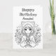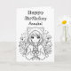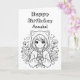 An anime themed girl's birthday card with a word search on the inside, and a coloring page on the front with an illustration of an anime girl with a hoodie that has cat ears holding a cupcake and a cute poem for a pre-teen girl!