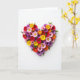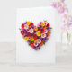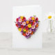 This design shows a large heart shape made from many small, daisy-like flowers on a plain white background. The flowers are packed closely together, creating a full, textured look that feels sweet and romantic 💘. You can see reds, pinks, purples, yellows, and oranges, with a few green leaves peeking out between the petals. The flower centers vary a bit in color, from light yellow to deeper brown, which adds extra detail without feeling busy. The lighting is bright and even, so the colors stand out clearly and there are no strong shadows. There is no text on the card, so the heart of flowers is the main message all on its own ❤️. It’s a simple, cheerful design that’s great for letting someone know you care, and for sharing Valentine’s Day feelings 😘.