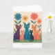 Tarjeta Colorful Retro Cats in Flower Garden – Whimsical