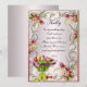 Hermoso ramo de tulipanes con un borde de hoja de oro. El día perfecto de toda novia incluye a sus amigas. ¿A quién confías para dar un discurso y realizar tareas como ayudarte a elegir los vestidos de las damas de honor para que tu plan de boda salga sin contratiempos? Ya sea tu hermana responsable, prima, sobrina o tu mejor amiga, esta invitación de "¿Serás mi dama de honor?" es una forma divertida de preguntar. Personaliza la tarjeta cambiando el texto en los campos proporcionados en la parte delantera y trasera. Puedes cambiar el estilo de fuente, tamaño y color, así como el tipo y estilo de papel.