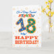 Una colorida tarjeta de cumpleaños número 18 para un "sobrino muy especial", con un número 18 con estampado brillante y la palabra "sobrino", con contornos de efecto oro, en un fondo ligeramente texturado.