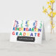 Esta es una divertida y colorida tarjeta de graduado de jardines de infancia con tiras y colores brillantes. Hay un cartel de "pizarra" para que puedas personalizar fácilmente esta tarjeta de Kindergarten con el nombre del niño. Dentro de la tarjeta de saludo, hay refranes coloridos y un mensaje que dice "¡Sí, lo hiciste! Estoy tan orgulloso de ti. ¡Celebremos!", que también puede cambiarse si lo desea. Esto haría un conservador único en el jardín de infancia.