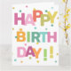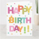 Tarjeta Colorido texto Confetti y estrellas Feliz cumpleañ