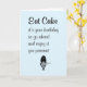 Una graciosa tarjeta de cumpleaños feliz, con un mal poema y ilustracion, sobre comer pastel de cumpleaños. El poema alude a la infame frase, atribuida a Marie Antoinette durante la Revolución Francesa, "que coman pastel".