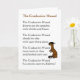 Una divertida tarjeta de felicitación de graduación universitaria, que presenta un mal poema y una ilustración sobre el caos y la destrucción que una comadreja puede causar en una ceremonia de graduación. La ilustración con el poema es un dibujo de una comadreja que lleva una birreta con borla dorada.