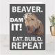 Tarjeta de felicitación de animal de castor divertido diseñada por Nisha Prabhu. Con divertido y lindo animal de castor con tipografía juguetona ''Beaver Dam IT Eat Build Repeat ''. Esta divertida y adorable tarjeta de felicitación presenta un castor peculiar con la frase juguetona "Eat Build Repeat". Perfecta para enviar una sonrisa a amigos y familiares, este diseño único seguro llamará la atención. ¡Consigue la tuya hoy y haz que la gente se ría!