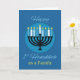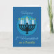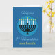 Tarjeta Como familia, primero Hanukkah Menorah en azul osc