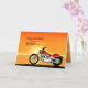 Una moto similar a una Harley que se alza junto al mar con una gloriosa puesta de sol naranja. Una gran carta para cualquiera que le guste el ciclismo y las motocicletas. Vea toda la gama de tarjetas para edades y relaciones en mi tienda. Todos los derechos de autor de arte Norma Cornes
