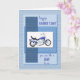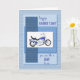 Una gran carta para el Día del Padre para alguien que es como un padre. Una motocicleta azul sobre un fondo azul abstracto. El frente dice "Feliz día del padre". Una gran tarjeta para alguien que es un entusiasta de la moto. Las texturas de la parte delantera de esta tarjeta están impresas.