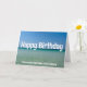 Esta hermosa tarjeta de cumpleaños de playa es hecha a medida con el nombre de su compañía costera sobre las olas del océano. Una tarjeta de cumpleaños de negocios de ensueño junto al mar para mercadeo a clientes pasados y colegas corporativos actuales. Escritura blanca moderna a través del horizonte costero. Escritura azul personalizada en el interior.