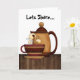 Esta es la tarjeta perfecta para abrir la discusión de compartir. Hay dos mujeres sentadas en una mesa tomando café y en la parte superior de la tarjeta se lee "compartamos"
