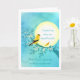 Tarjetas de felicitación por alguien que ha perdido a su tía. El diseño incluye texto personalizado en la cubierta, un pájaro de finca dorada que descansa en una rama florida y una sola pluma amarilla que flota hacia abajo. Fondo acuático en tonos azules, acuáticos y azul verdoso. Personalizar el texto y el mensaje dentro como desee antes de retirarlo. Arte, imagen y verso copyright © Shoaff Ballanger Studios / 2020.