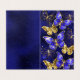 Composición de lujosas mariposas de zafiro y joyas de oro sobre fondo de textura azul.